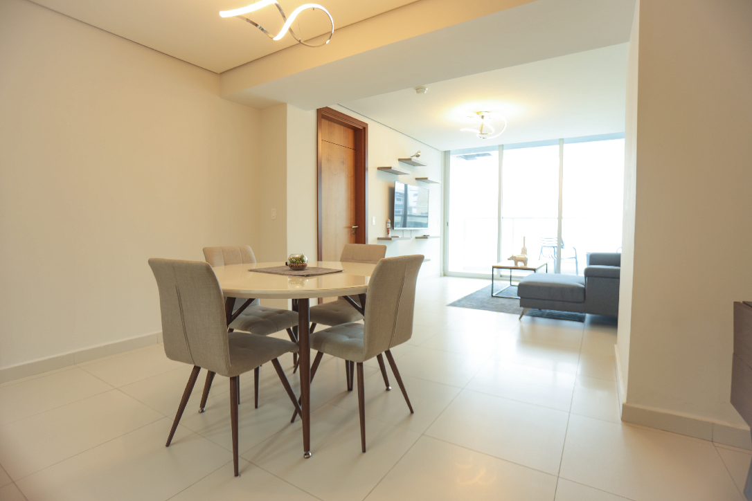 Con 102 m², la propiedad cuenta con 1 amplia recámara, 1.5 baños, balcón privado y está completamente amoblada, lista para mudarse. Su diseño moderno aprovecha al máximo la luz natural, creando espacios cómodos y funcionales ideales para profesionales o parejas que valoran el confort y la ubicación.