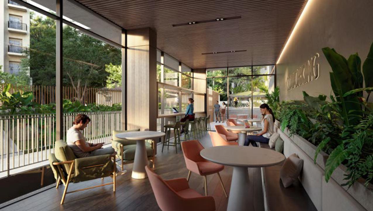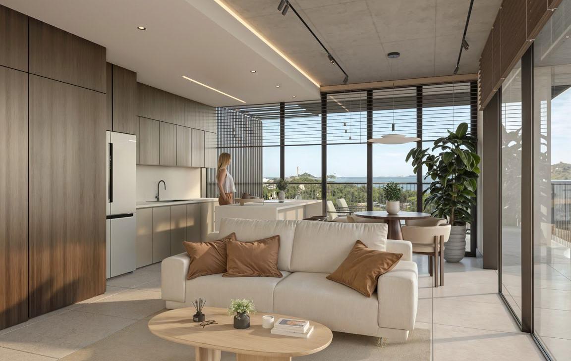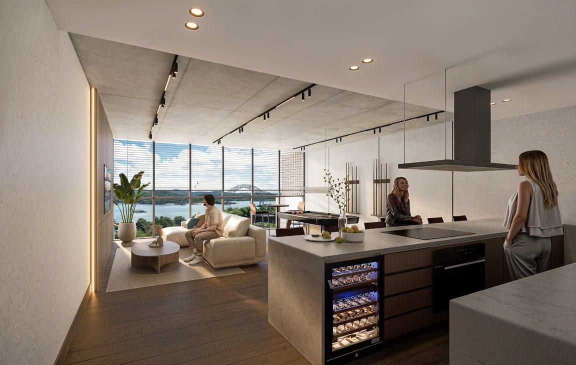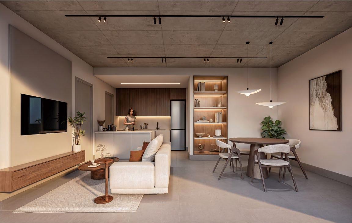 El edificio cuenta con 96 hogares diseñados para la comodidad y el bienestar, donde la luz natural y los espacios abiertos crean un ambiente armónico y elegante.